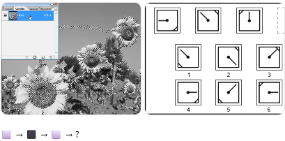 Rotación: Una figura que gira (ej: una flecha que gira 90 grados cada vez).