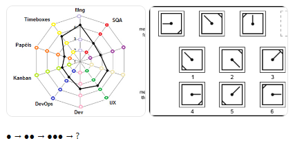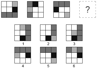 Un atributo cambia de manera progresiva (blanco → gris → negro, círculo → cuadrado → triángulo).